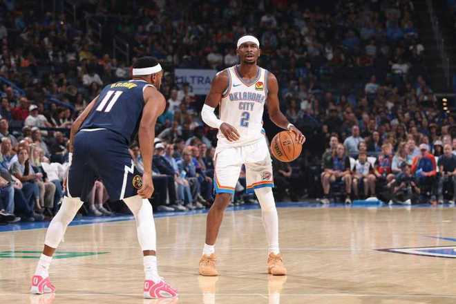 北京时间10月18日,NBA季前赛掘金队客场对阵雷霆队。掘金队轮休了约基奇、穆雷、戈登和布朗。掘金队利用球队进攻力压雷霆队,拉开16分的领先优势。第四节雷霆队打出17-0的高潮。最后1分钟,两队轮流占据优势,以91-91获胜。终场哨声响起,吉恩三分命中。最终,雷霆以94-91击败掘金,取得季前赛二连胜。掘金队数据:约基奇、穆雷、戈登、布朗缺阵。卡约得到9分6篮板4助攻,沃特森15分6篮板4助攻,小哈达威4个三分球13分,布朗10分,皮克特12分,斯托勒4个三分球14分。雷霆队:亚历山大5投5中得到12分4篮板5助攻,霍姆格伦9分6篮板3助攻,华莱士10分迪昂得到17分。比赛概况:掘金队在最近三场季前赛中击败了猛龙队、快船队和公牛队,取得了三连胜。在季前赛最后一场比赛中,雷霆队以116-112险胜雄鹿队。掘金队缺少约基奇、穆雷、戈登和布朗四名关键球员,而雷霆队则缺少贾伦、乔和米切尔。首节开局掘金队以3-8落后。掘金队内线强攻,将比分改写为10-10。两队继续争夺积分。首节结束,掘金21-22领先雷霆。小哈达威得到10分。第二节比赛,掘金进攻威力明显增强。掘金队打出一波10-0的进攻高潮,取得9分的领先优势。掘金队继续得分,将领先优势扩大到41-27 14分。亚历山大连续得分让雷霆发起快攻追分,但首节掘金取得14分领先尤尔特以38-24获胜。上半场结束,雷霆59-46领先13分。亚历山大前两节5中5,拿到12+4+5分。沃森和小哈达威拿下13分。中场休息后,两队进攻力均有所下降。值得注意的是,掘金队第三节的得分比第二节少了22分。这也是掘金队第一次单节得分低于20分。亚历山大下半场没有出场,瓦兰丘纳斯手臂流血后离场接受治疗。首节掘金落后4分,以16-20落败。第三节结束,掘金75-66领先雷霆。前三节比赛,掘金队三分球34投15中,全队三人得分上双。沃森轰下15+6+4三分,小哈达威轰下13+4三分,布朗拿下10分。雷霆队两名球员得分上双es.末节比赛,前3分钟掘金以85-69领先雷霆16分。雷霆队里里外外疯狂,打出一波17-0的进攻高潮取得一分领先。泰森因踩球被吹一级犯规。摩西布朗两罚一中打破掘金得分荒,杨布拉德上篮取得两分领先,贝茨两罚一中,雄狮三分球再次领先。柯蒂斯·琼斯投篮不中,罚球不中,比分变成91-91。终场哨声响起,吉恩三分命中。最终,掘金以91-94不敌雷霆。双方首发:卡约、沃森、瓦兰丘纳斯、小哈达威、布朗雷霆:卡鲁索、霍姆格伦、哈滕施泰因、多特、亚历山大(醉沃厚臣撰)